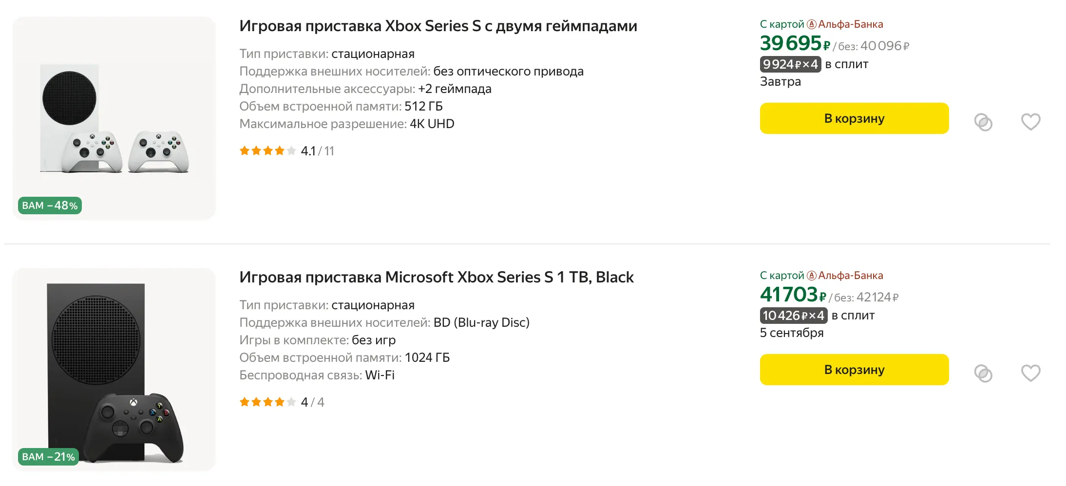 - NEW Xbox Series S (1 Тбайт) — 41 700 рублей