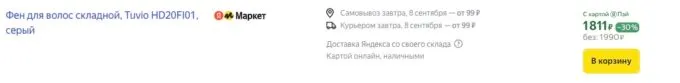 Прямо сейчас на Яндекс Маркете стильный складной фен Tuvio HD20FI01 можно купить всего за 1990 рублей. Также не забывайте, что некоторые банки готовы отсыпать кэшбек за покупки на этой платформе.