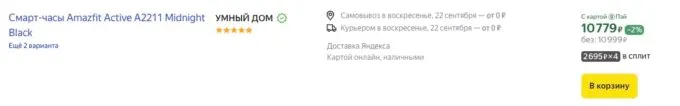 Прямо сейчас хитовые Amazfit Active можно урвать на Яндекс Маркете всего за 10 999 рублей. А с кэшбеками некоторых банков они обойдутся даже дешевле 10 косарей.
