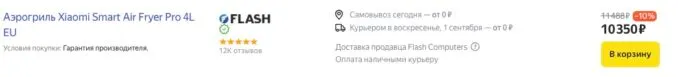 Обычно за Xiaomi Smart Air Fryer Pro просят около 14 косарей, но сейчас на Яндекс Маркете топовый аэрогриль для дома можно урвать всего за 10 350 рублей.
