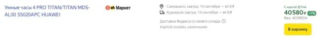 Прямо сейчас флагманские Huawei Watch 4 Pro можно купить на Яндекс Маркете всего за 40 990 рублей. А с кэшбеками некоторых банков вы можете сэкономить пару косарей.