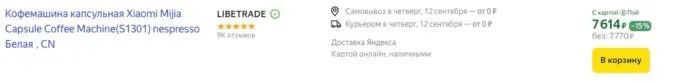 Прямо сейчас компактную кофемашину Xiaomi Mijia Capsule Coffee Machine S1301 можно урвать на Яндекс Маркете всего за 7770 рублей. Ну, а с кэшбеками некоторых банков она обойдётся даже дешевле семи косарей.