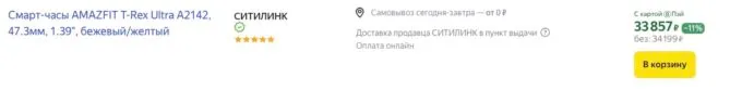 Сейчас мощные Amazfit T-Rex Ultra можно урвать на Яндекс Маркете всего за 34 199 рублей. А с кэшбеками некоторых банков они обойдутся ещё дешевле.