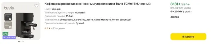 Почему все гаджеты Tuvio нужно покупать только на Яндекс Маркете? Во-первых, именно там они продаются официально, поскольку это эксклюзивная линейка техники Яндекса. Во-вторых, только тут вы получите стопроцентную гарантию и доставку в любую точку России. И не забудьте сразу добавить в корзину с кофеваркой несколько пачек молотого кофе на свой вкус.