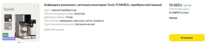 Мы знаем, что многие читатели «Палача» предпочитают начинать своё утро с порции бодрящего эспрессо. А чтобы в дождливую погоду не выбегать из дома в поисках кофейни, лучше всего приобрести в дом кофеварку. Если раньше такие гаджеты считались предметом роскоши, то сейчас практически каждый может себе их позволить. Нашли две топовые кофеварки от суббренда Яндекса, Tuvio, по очень выгодным ценам. Кстати, в них ещё и капучинаторы есть, а по качеству они ничуть не уступают кофемашинам De’Longhi, Saeco или Bosch.