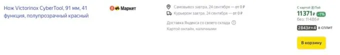 Обычно такие вещицы стоят под 15-16 тысяч, но сейчас на Яндекс Маркете топовый мультитул Victorinox CyberTool L можно приобрести за 11 486 рублей. Также не забывайте, что с кэшбеком некоторых банков он обойдётся всего в 10 тысяч.