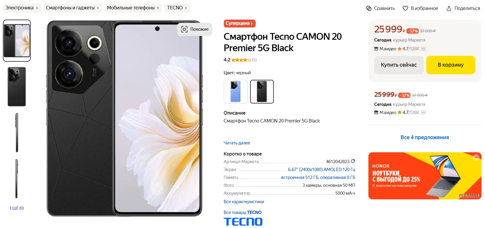 Несмотря на то, что Tecno Camon 20 Premier представили еще в прошлом мае, девайс до сих пор находится в продаже, хотя обычно смартфоны постепенно исчезают с прилавков как только им стукнет год. Впрочем, уже вышла новая модель, 30 Premier — чтобы стимулировать ее продажи, от «двадцатки» все же постепенно избавляются.