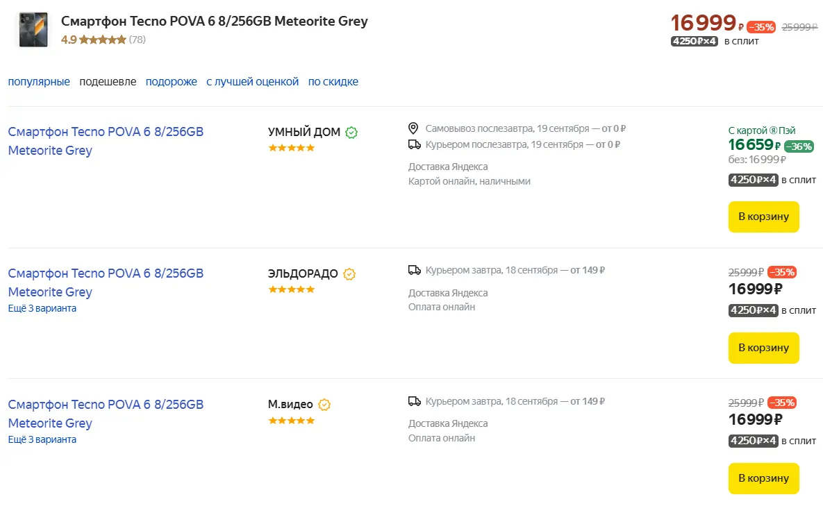 Tecno Pova 6 появился в России еще весной, но хитом не стал, потому что мало чем отличался от хитового предшественника, однако стоил значительно больше. Неудивительно, что смартфон быстро подешевел — сейчас он доступен всего за 17 тысяч на Маркете.