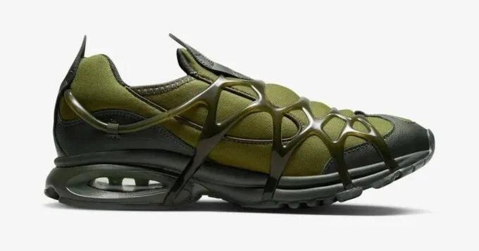 Начинаем с оливковых Kukini Lifestyle от американцев из Nike, и это кроссовки с уникальным дизайном. Фишка модели – инновационная система фиксации стопы. То есть, вам буквально не понадобятся шнурки. Кроме того, верх обуви выполнен из дышащего материала, а за амортизацию отвечает фирменный пузырь Air.