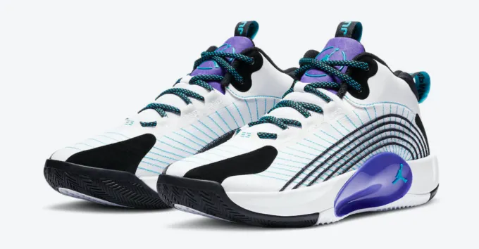А вот и футуристичные жорики – идеальный вариант для поклонников высоких кроссовок или фанатов баскетбола. Помимо необычного дизайна, здесь есть воздушная подушка Zoom Air, отвечающая за амортизацию и комфорт во время игры. Еще одна важная деталь – крутейшая фиолетово-белая расцветка.