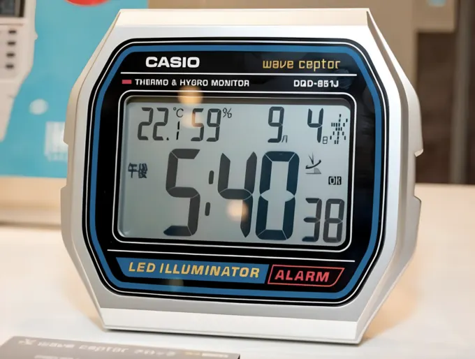 Созданный на основе наручных часов будильник DQD-851J-8JF выглядит очень похоже. У него нет секундомера, а также устройство не пищит с началом каждого часа, как оригинал. Зато в девайс добавили термометр и датчик влажности. Из оригинальной версии перенесли теплую янтарную подсветку и будильник с функцией повтора.