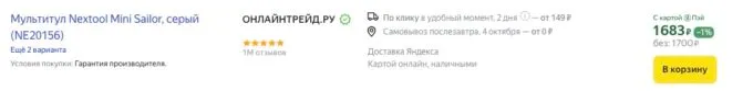 Обычно такие мультитулы стоят под 3 косаря, но прямо сейчас NexTool Mini Sailor можно урвать на Яндекс Маркете за смешные 1700 рублей. А с кэшбеками некоторых банков он обойдётся в 1500 рублей.