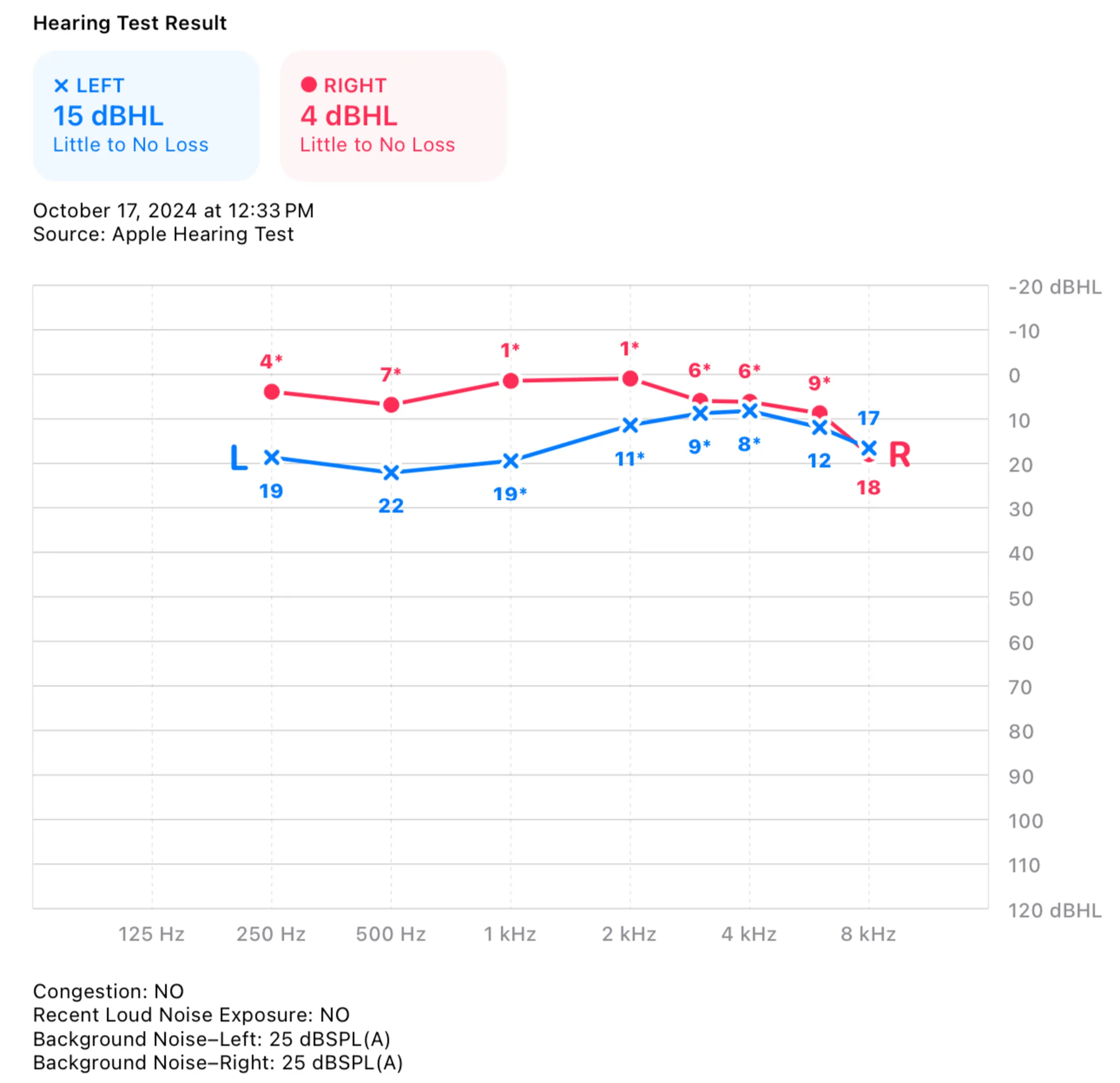 По словам Уэлча, совершенно нормально, что паузы, во время которых вы ничего не будете слышать, могут растянуться на 5-10 секунд. Хотя он и назвал такие периоды ожидания довольно волнительными. В конце на экране появится статистика и данные о степени потери слуха. Тест сохранится в приложении «Здоровье», также результаты можно сохранить и отправить в PDF своему врачу.