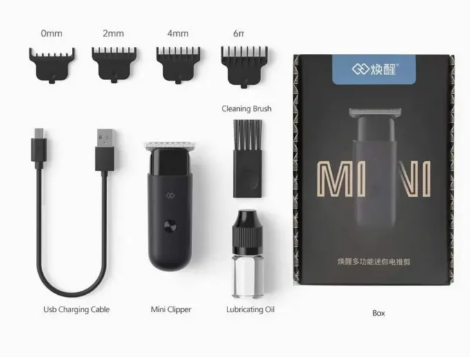 На одной батарейке устройство протянет до 90 минут. Заряжается гаджет через провод USB-C — он присутствует в комплекте. Также есть щеточка для обслуживания триммера и масло для смазки.