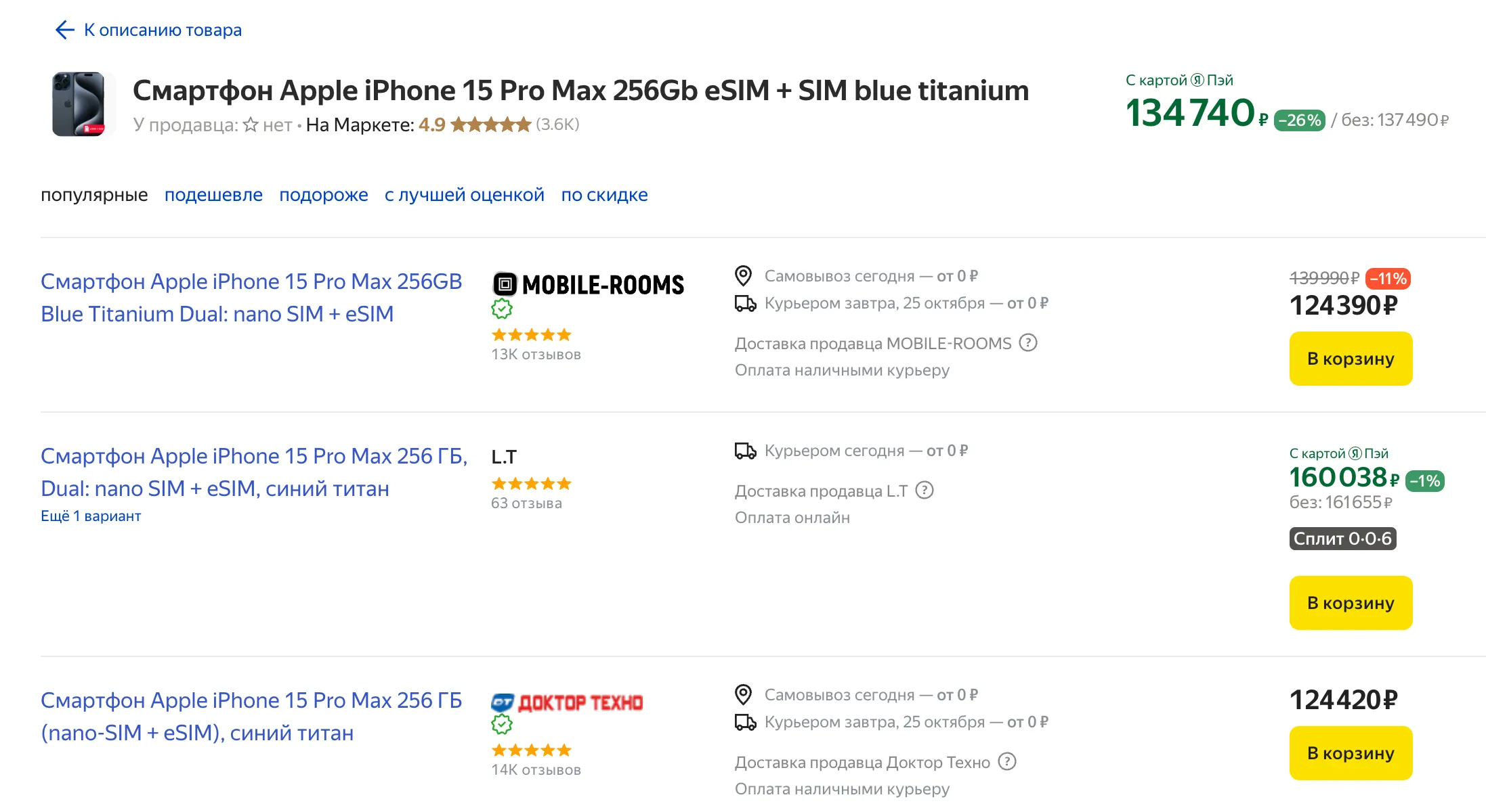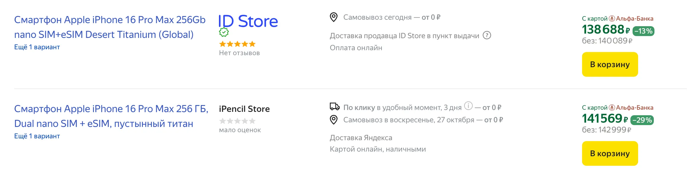 Авторы Hi-Tech Mail.ru рассказали, что iPhone 16 Pro Max подешевел на 30 тысяч рублей. Мы поискали более тщательно и обнаружили еще более жирную скидку — по сравнению с сентябрьскими прайсами (до 200К) ценник упал на 60 косарей!