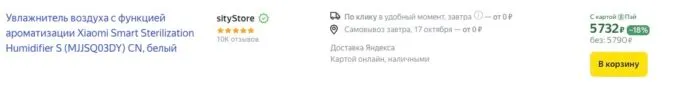 Обычно за увлажнитель воздуха Xiaomi Smart Sterilization Humidifier S просят около 7 тысяч, но сейчас его можно купить на Яндекс Маркете всего за 5790 рублей. Также не забывайте, что многие банки предлагают солидный кэшбек за покупки на этой платформе.