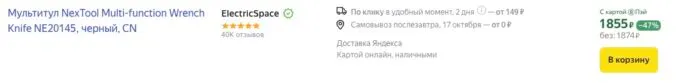 Обычно за такой мультитул просят больше 4 тысяч рублей, но сейчас на Яндекс Маркете мощный Xiaomi NexTool Multi-function Wrench Knife можно купить всего за 1874 рубля. Также не забывайте, что многие банки готовы отсыпать кэшбек за покупки на этой платформе.