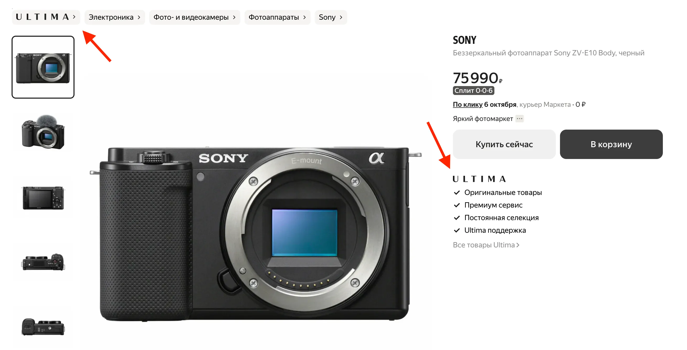 Товары из раздела Ultima можно также найти в поиске — на их карточке есть специальные пометки.
