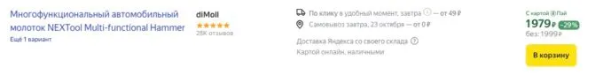 Обычно за такие девайсы просят около 5 косарей, но сейчас на Яндекс Маркете крутой мультитул автомобилиста Xiaomi NexTool Multifunctional Survival Hammer можно урвать всего за 1999 рублей. Также не забывайте, что некоторые банки готовы отсыпать кэшбек с покупок на этой платформе.