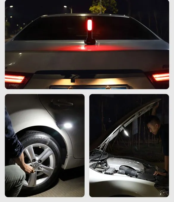 С помощью NexTool Multifunctional Survival Hammer можно подсветить спущенное колесо, чтобы подкачать его, проверить свечи или затянуть клеммы на аккумуляторе. Кстати, его даже в руках держать не придётся. В основании есть магниты, с помощью которых его можно прицепить к кузову.
