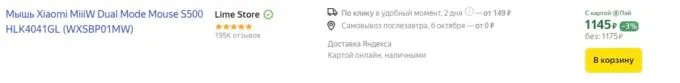 Обычно за Xiaomi Mi Dual Mode Wireless Mouse Silent Edition просят под 2 косаря, но сейчас её можно урвать на Яндекс Маркете всего за 1175 рублей. А с кэшбеками некоторых банков она обойдётся дешевле тысячи рублей.