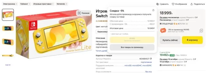 Π‘Π΅ΠΉΡΠ°Ρ Π½Π° Π―Π½Π΄Π΅ΠΊΡ ΠΠ°ΡΠΊΠ΅ΡΠ΅ ΠΌΠΎΠΆΠ½ΠΎ Π·Π°Π±ΡΠ°ΡΡ Nintendo Switch Lite Π² Π»ΡΠ±ΠΎΠΉ ΡΠ°ΡΡΠ²Π΅ΡΠΊΠ΅ Π²ΡΠ΅Π³ΠΎ Π·Π° 18 049 ΡΡΠ±Π»Π΅ΠΉ ΠΏΠΎ ΠΏΡΠΎΠΌΠΎΠΊΠΎΠ΄Ρ MVM5, Π° Ρ ΠΊΡΡΠ±Π΅ΠΊΠ°ΠΌΠΈ Π½Π΅ΠΊΠΎΡΠΎΡΡΡ Π±Π°Π½ΠΊΠΎΠ² ΠΎΠ½Π° ΠΎΠ±ΠΎΠΉΠ΄ΡΡΡΡ Π΅ΡΡ Π΄Π΅ΡΠ΅Π²Π»Π΅.