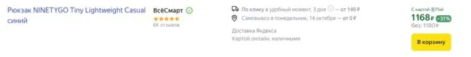 Прямо сейчас NinetyGo Tiny Lightweight Casual можно купить на Яндекс Маркете всего за 1180 рублей. Также не забывайте, что некоторые банки могут отсыпать кэшбек за покупки на этой площадке.