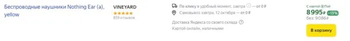 Прямо сейчас стильные беспроводные наушники Nothing Ear (a) можно урвать на Яндекс Маркете всего за 9086 рублей, а с кэшбеками некоторых банков они обойдутся ещё дешевле.