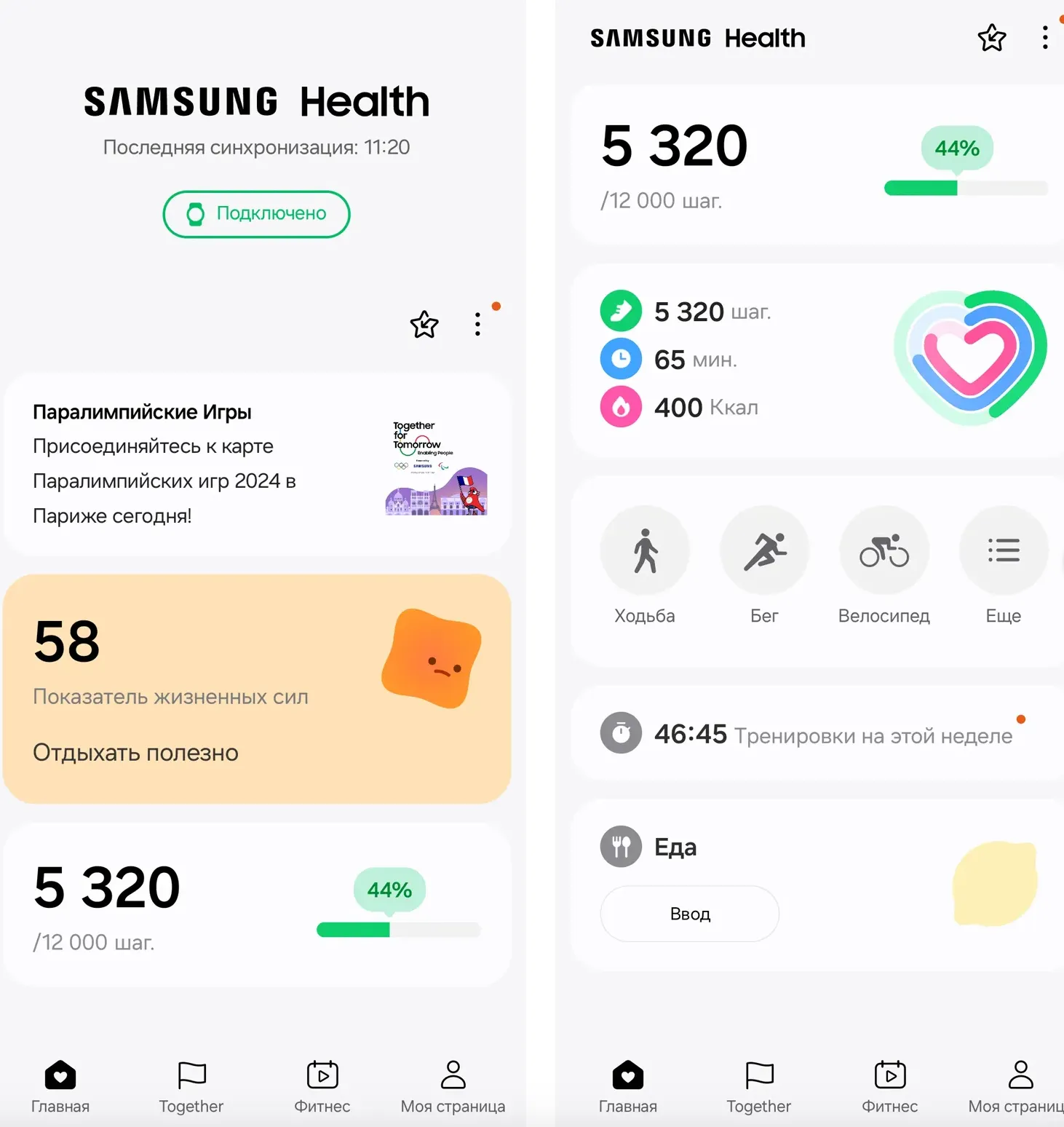 Устройство поддерживает 90 видов спорта. Также часы самостоятельно распознают некоторые виды спортивной активности. Гаджет следит за всеми важнейшими показателями — сердцебиением, уровнем кислорода в крови, уровнем стресса, температурой кожи запястья. Также они умеют показывать, храпели ли вы во сне и могут определять апноэ. Вся информация хранится в приложении Samsung Health.