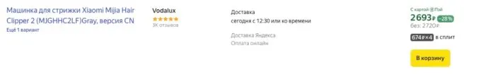 Сейчас на Яндекс Маркете флагманскую машинку для стрижки Xiaomi Mijia Hair Clipper 2 можно урвать всего за 2720 рублей, а с кэшбеком некоторых банков она обойдётся всего в 2 кэса.