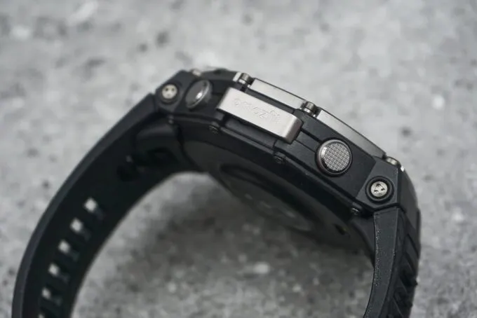 Начнём с того, что Amazfit T-Rex 3 отличаются от предшественников глобальным редизайном. Теперь они выглядят ещё брутальнее: круглый безель заменила восьмиугольная рама под G-Shock, а кнопки получили специальную текстуру и дерзкие красные акценты. Корпус этих «котлов» сделан из нержавеющей стали, поэтому поломать случайным ударом об дверь не получится.