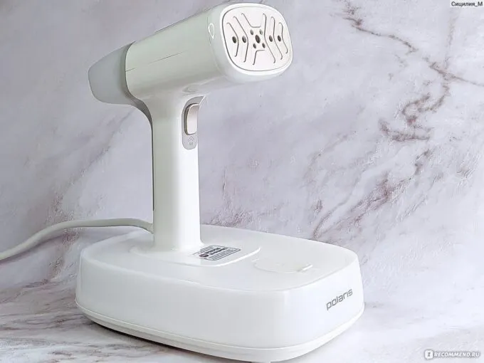 Все вещи, приготовленные для тестирования отпарились отлично. Особенно порадовало, как устройство справляется с обычными футболками, жакетами, шерстяными вещами, рубашками. Есть два режима подачи пара — 25 и 40 граммов в минуту. Тут нет системы автоматической очистки от накипи, поэтому для гаджета от Polaris рекомендуют использовать только дистиллированную воду.