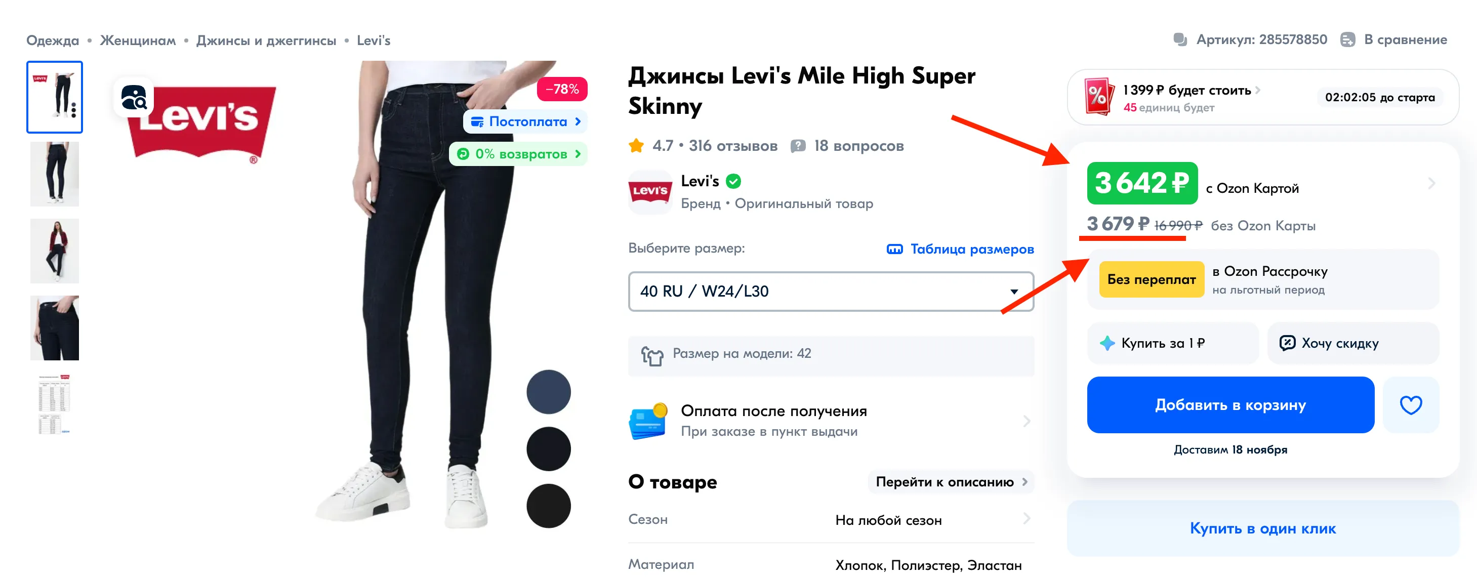 «Ozon Карта» позволяет покупать товары на Ozon дешевле — это ее основная фишка. Разница при оплате фирменной картой и другим платежным средством может быть существенной (особенно при покупке дорогого товара). Также время от времени банк проводит акции для клиентов — например, разыгрывает призы.