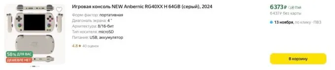 Обычно за новую консоль Anbernic RG40XX H (2024) просят 10-12 тысяч, но сейчас на Яндекс Маркете лучшую консоль для ретро-игр можно забрать за 6437 рублей. Также не забывайте, что некоторые банки готовы отсыпать кэшбек за покупки на этой площадке.