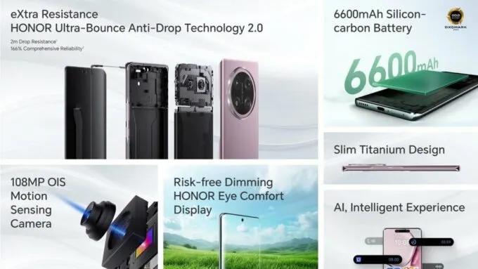 Honor X9c получил сертификат надежности SGS — задняя панель почти не царапается, девайс может выдержать падение с высоты до двух метров. Аппарат защищен по стандарту IP65M, его можно смело мыть прямо в раковине. Также он не боится жары и холода — в Honor заметили, что смартфон выдержит температуры от -30 до +55 градусов.