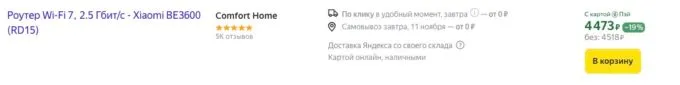 Прямо сейчас Xiaomi BE3600 с Wi-Fi 7 можно купить на Яндекс Маркете всего за 4518 рублей. Также не забывайте, что многие банки готовы отсыпать кэшбек за покупки на этой платформе.