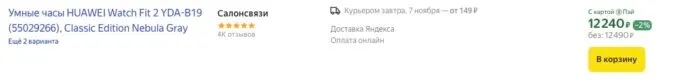 В последние месяцы девайс продавали по 16-18 косарей, но сейчас на Яндекс Маркете топовые Huawei Watch Fit 2 Classic Edition можно урвать всего за 12 490 рублей. А с кэшбеками некоторых банков они обойдутся дешевле ~10 косарей.