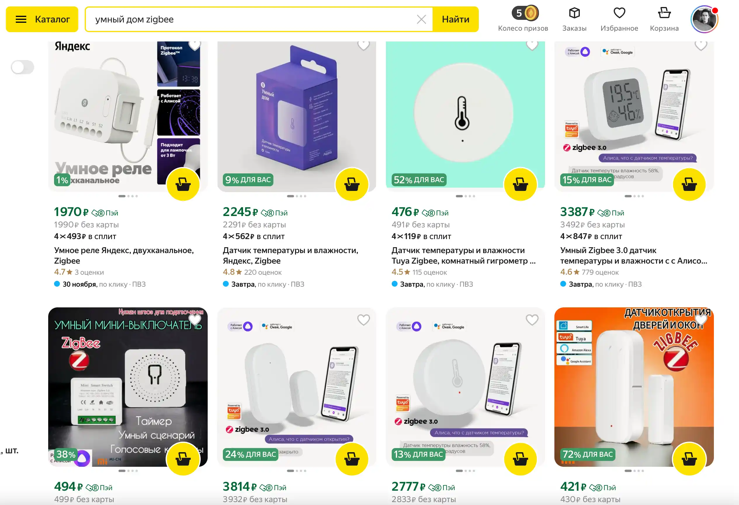Для поиска поддерживаемых гаджетов вбиваем запрос (например, «умный дом zigbee») и подбираем устройства, которые точно будут работать с этой колонкой — даже если были выпущены другим производителем.