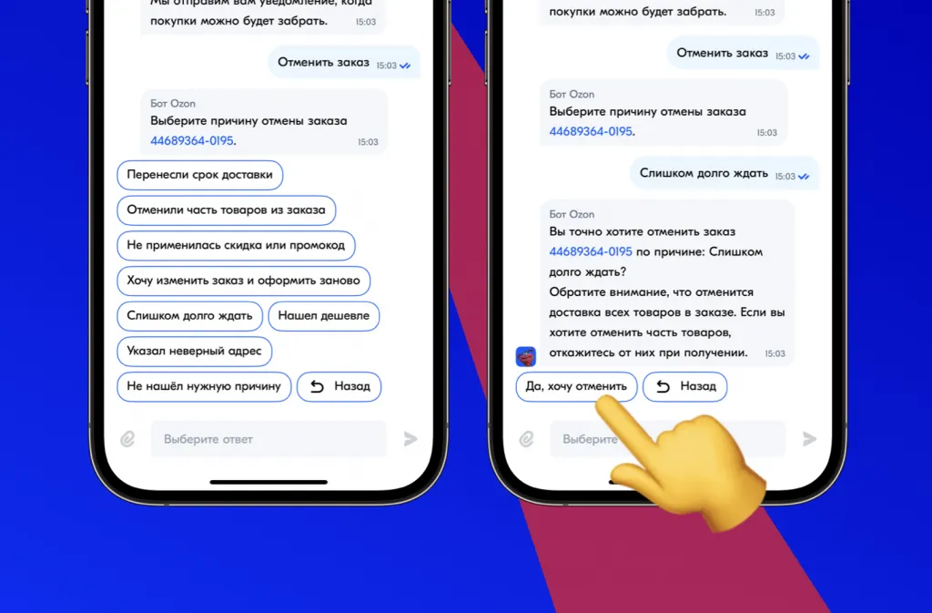 Интересно, что таким образом можно отправить товары обратно к продавцу, даже если заказ уже приехал и ждет вас в ПВЗ. По словам авторов iGuides, отмена заказа всегда будет бесплатной. «Я пока не встречал ни одного заказа, который нельзя было бы отменить через бота поддержки», — заявил журналист Олег Воронин.