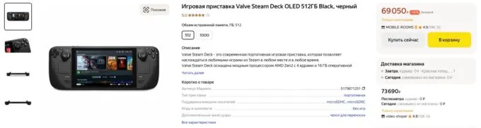 Сейчас на Яндекс Маркете лучшую портативную консоль 2024 года — Steam Deck OLED — можно купить от 69 050 рублей. Лучше поспешить, пока цены не улетели в космос.