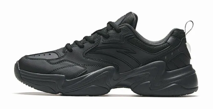 Начинаем с черных кроссовок, выполненных из искусственной кожи. Это модель Dad Shoes, названная так из-за ретро-силуэта. Перед вами брутальная обувь, в которой нет ничего лишнего. Хороший вариант для демисезона или даже городской зимы.