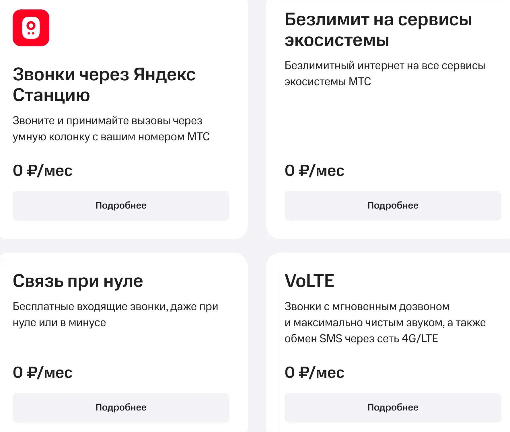 Также в тариф входят такие оригинальные опции, как безлимит звонков через «Яндекс Станцию» или VoWiFi.