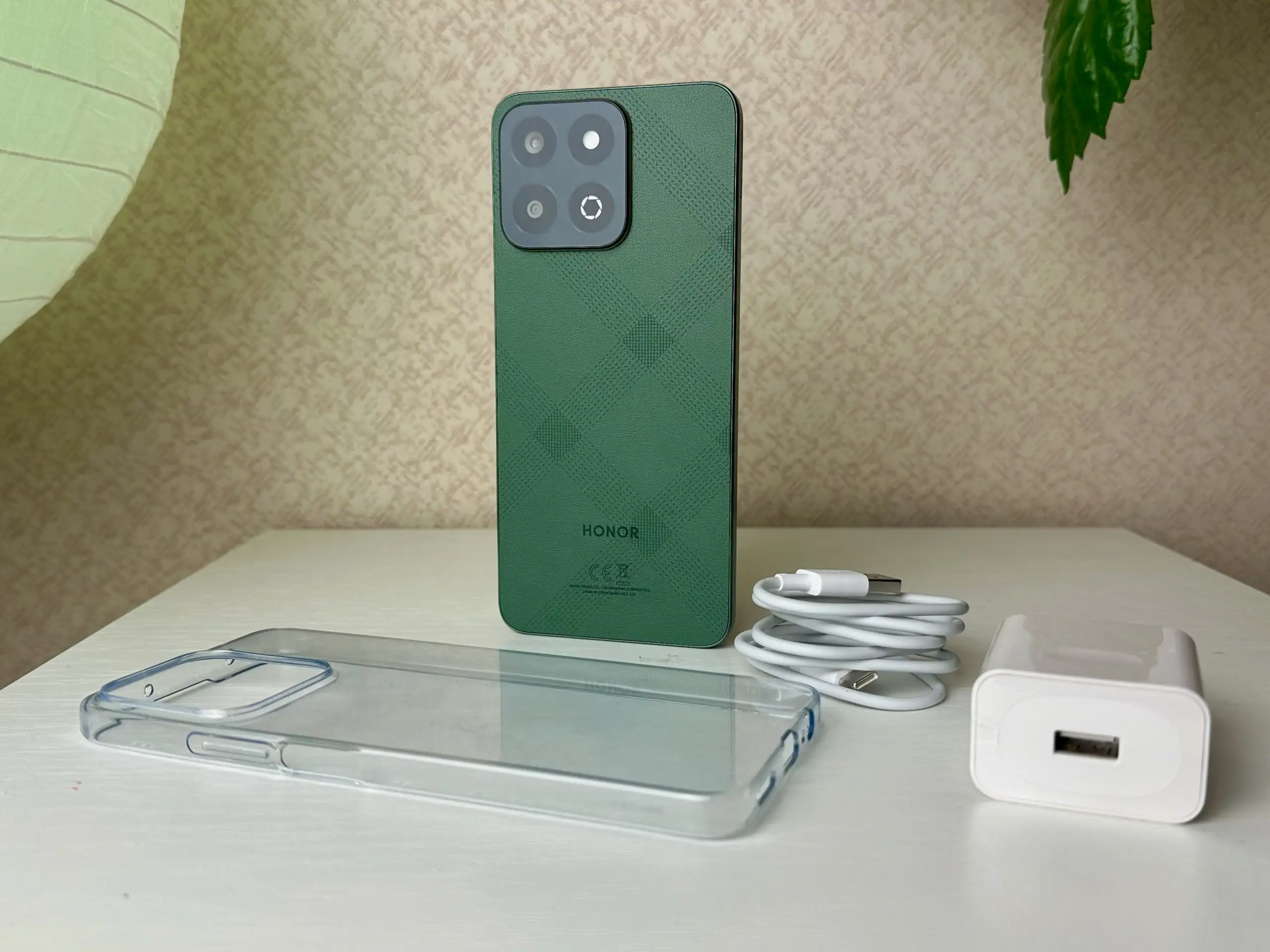 Комплектация здесь обычная для китайских смартфонов — сам аппарат, провод c USB-A на USB-C, адаптер 35 Вт и прозрачный силиконовый чехол. Телефон очень тонкий, и лично мне носить его в чехле было удобнее, чем без. Странно, что адаптер питания имеет устаревший порт USB-A, но мы помним: телефон довольно бюджетный.