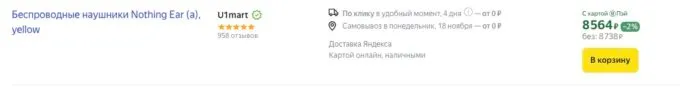 Прямо сейчас стильные беспроводные наушники Nothing Ear (a) можно купить на Яндекс Маркете всего за 8738 рублей, а с кэшбеками некоторых банков они обойдутся ещё дешевле.