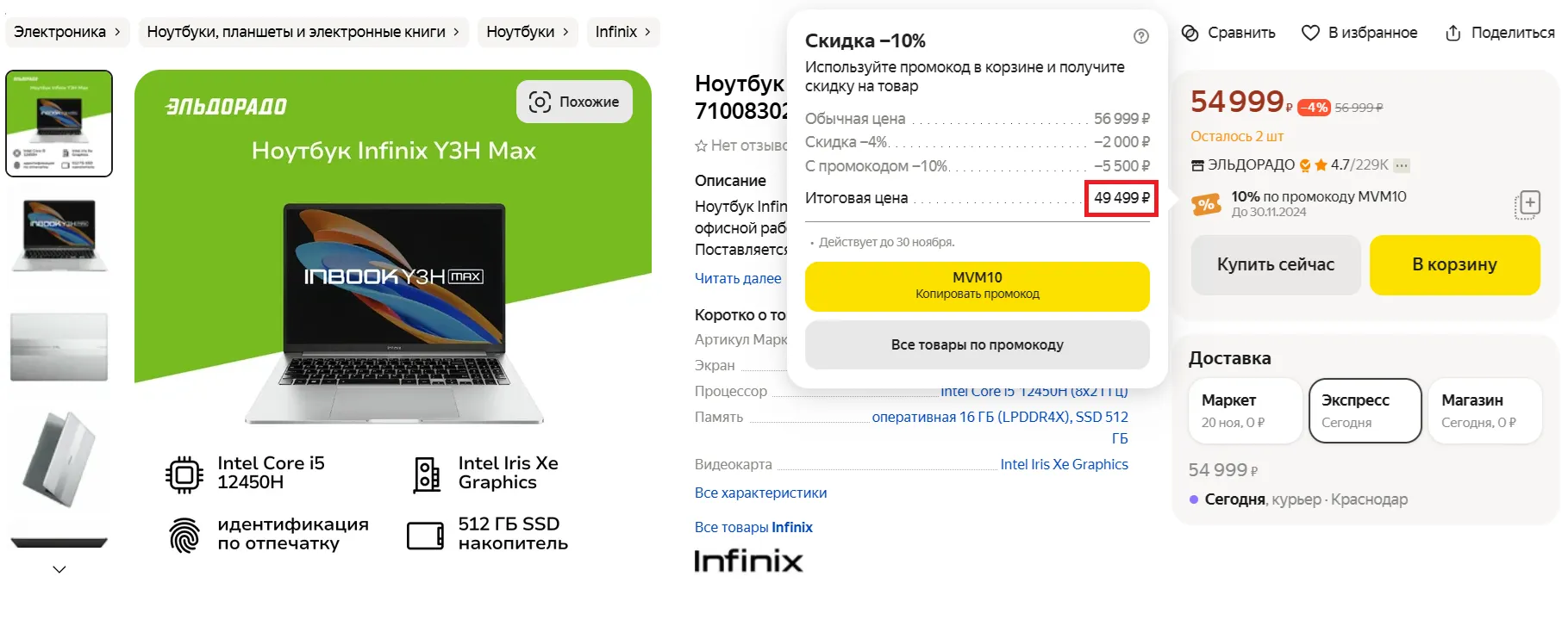 Пока что думаю, что свои 50 тысяч Infinix Y3H Max однозначно отрабатывает — вряд ли мое мнение изменится спустя пару недель. Если заинтересовались этим ноутом с большим экраном и легким корпусом, то заглядывайте на Маркет: там аппарат доступен за 49 500 рублей, если на стадии оформления заказа применить код MVM10.