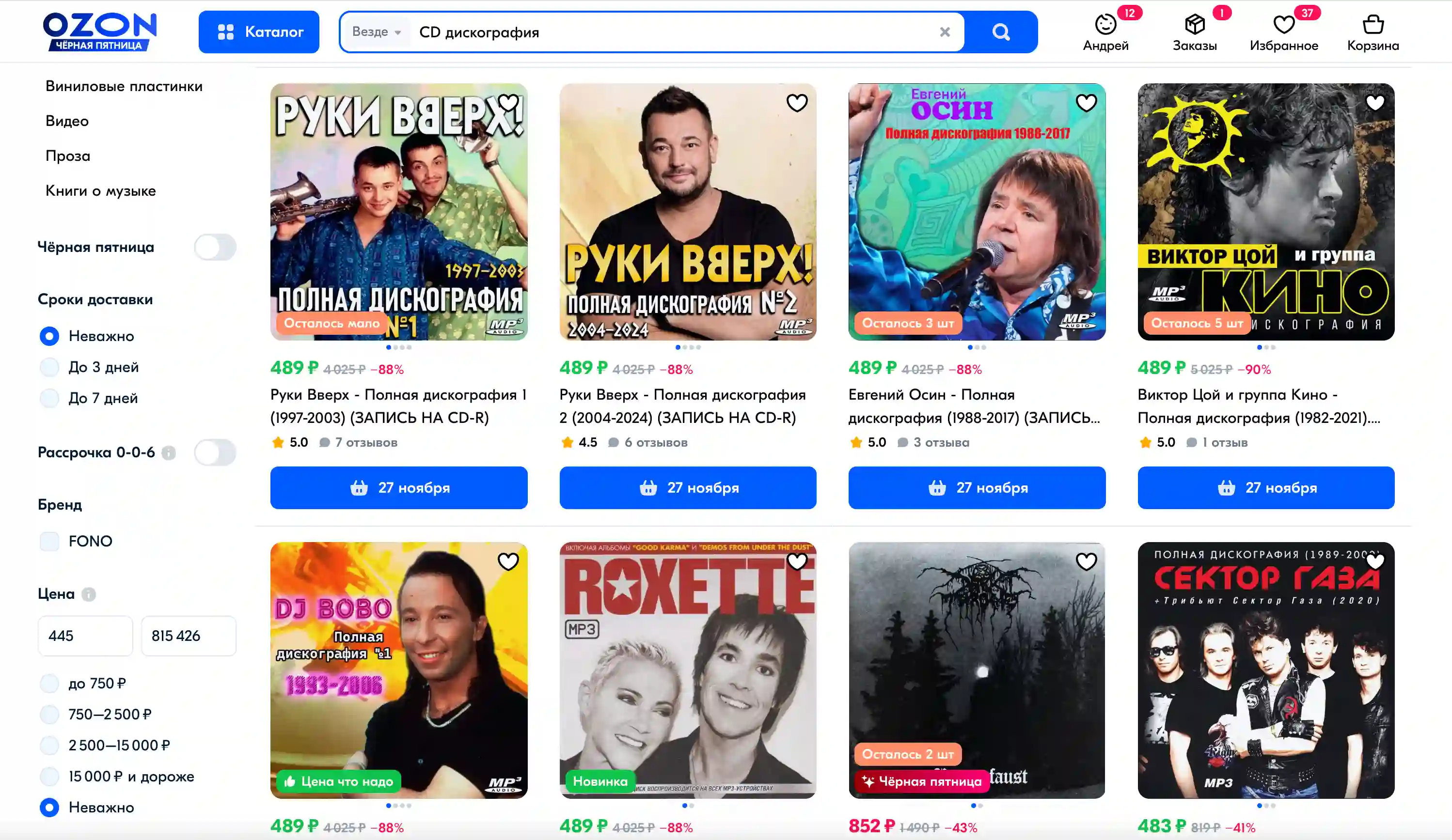 Авторы iGuides заметили, что на Ozon стали появляться в продаже диски с музыкой и видео. В карточках товара не указан официальный продавец или правообладатель, нет и сертификата. Впрочем, очевидно, что условная группа «Сектор Газа» никогда не выпускала дискографию на одном DVD — это 100% пиратство.