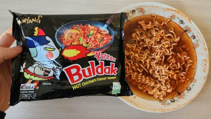 «В магнитах и пятерках продают чан рамен от доширак, лапша кайфовая, единственный недостаток — её варить надо 5 минут, рекомендую жареный рамен для любителей острого, чёрному булдаку не уступает. Мне вообще кажется, что доширак всеми силами вложился в эту линейку раменов».