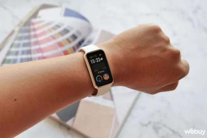 Этот трекер очень похож на смарт-часы Huawei Watch Fit 2. У него такой же вытянутый алюминиевый корпус, отличный экран и куча прикольных функций. Справа расположено цифровое колёсико для запуска меню, однако для прокрутки интерфейса оно не предназначено.