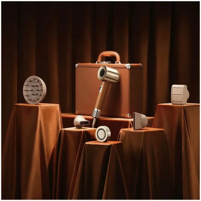Закрывает подборку стильный и премиальный фен Dreame Hair Miracle в элегантном золотистом цвете. Самая свежая модель от проверенного бренда. Его дизайн излучает роскошь благодаря кожаной рукоятке и комплекту поставки. Пока большинство люксовых фенов поставляются в обычных коробках или бархатных футлярах, Dreame Hair Miracle упакован в кожаный саквояж. Внутри вас ждут 5 магнитных насадок под разные типы волос.