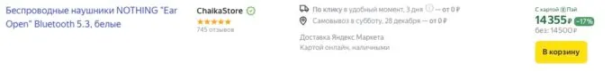 Cейчас на Яндекс Маркете свежие наушники Nothing Ear (Open) можно урвать за 14 500 рублей. Также не забывайте, что вы можете сбить цену бонусами и получить кэшбек.